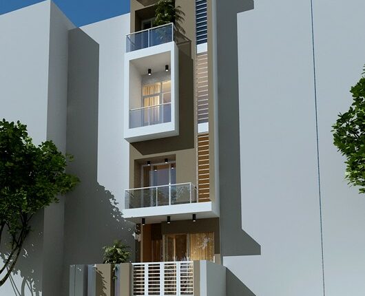 Đặc trưng của mảnh đất hẹp và dài nên ngôi nhà sẽ xây theo loại hình kiến trúc nhà ống. Với chiều cao 4 tầng, ngôi nhà sẽ đảm bảo đầy đủ yêu cầu công năng cơ bản cần có như phòng khách, phòng ngủ, bếp…..Tuy nhiên, diện tích xây dựng được lùi vào một khoảng để dành cho sân trước và sau theo như yêu cầu của gia đình.