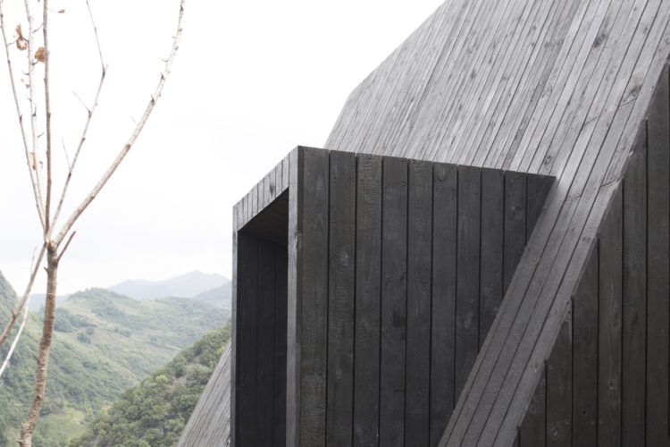Do địa hình phức tạp, các vật liệu xây dựng phải được vận chuyển bằng tay lên núi. Do vậy để cải thiện hiệu quả xây dựng và giảm thiểu thiệt hại cho các thành đá ban đầu thì một hệ thống kết cấu kết hợp của các khung thép chắc chắn và gỗ được lựa chọn để xây dựng. Gỗ carbonized của mặt tiền được sản xuất tại chỗ với quy trình đơn giản để giảm chi phí. Và việc sử dụng vật liệu gỗ nhằm mục đích tạo sự hài hòa với cảnh quan và bầu không khí mộc mạc đồng thời tạo thành sự tương phản với các tòa nhà ngôi làng hiện có. Sự khác biệt mang đến những cảm giác khác biệt cho bạn khi đến đây. Nét đẹp và thơ mộng không phải ngôi nhà nào cũng có.