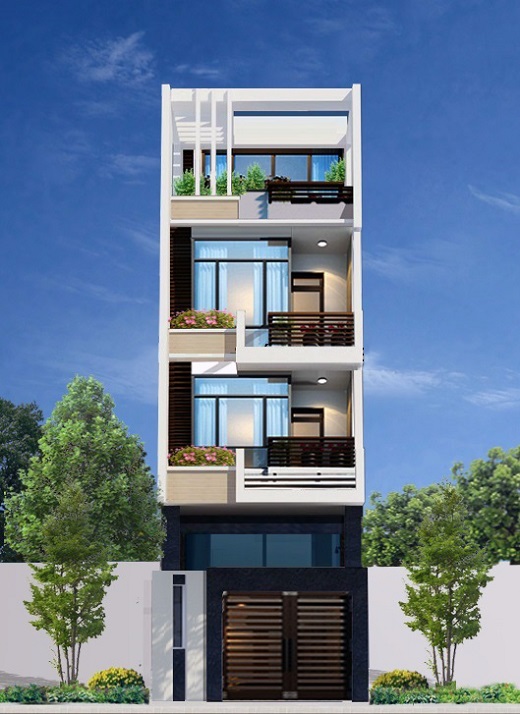 - Mặt tiền thiết kế nhà ống 4 tầng 5m