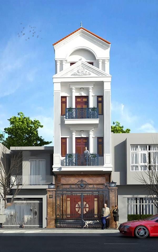 - 3.1. Mẫu thiết kế nhà ống 4 tầng phong theo phong cách cổ điển