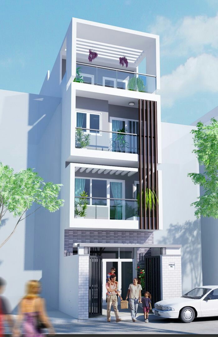 - Mặt tiền thiết kế nhà ống 4 tầng 3m