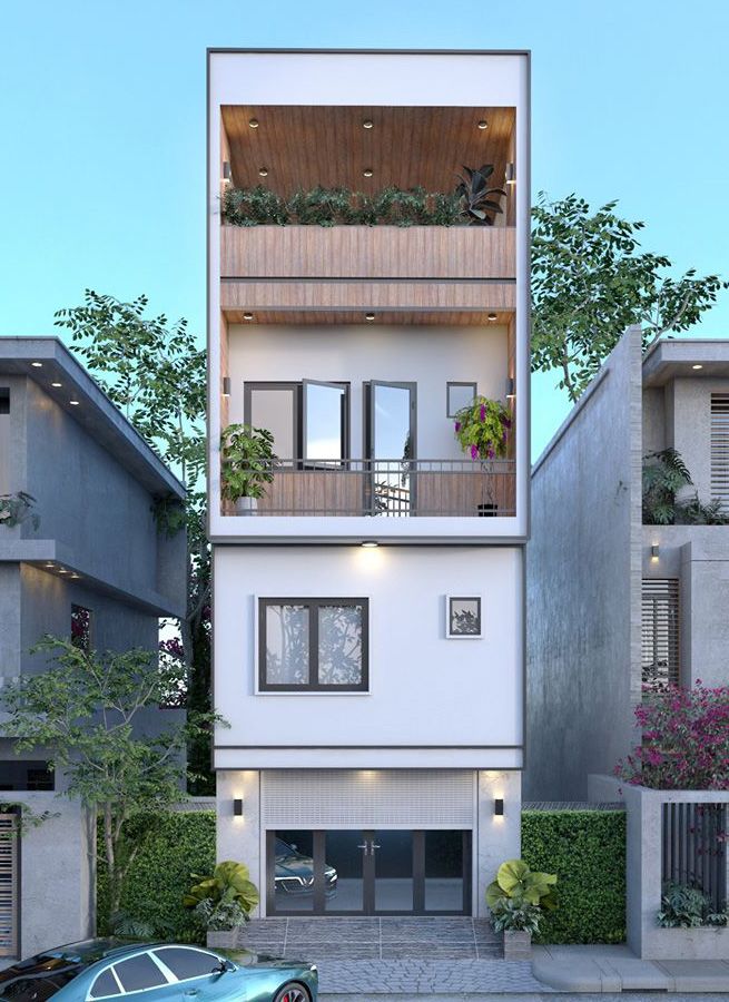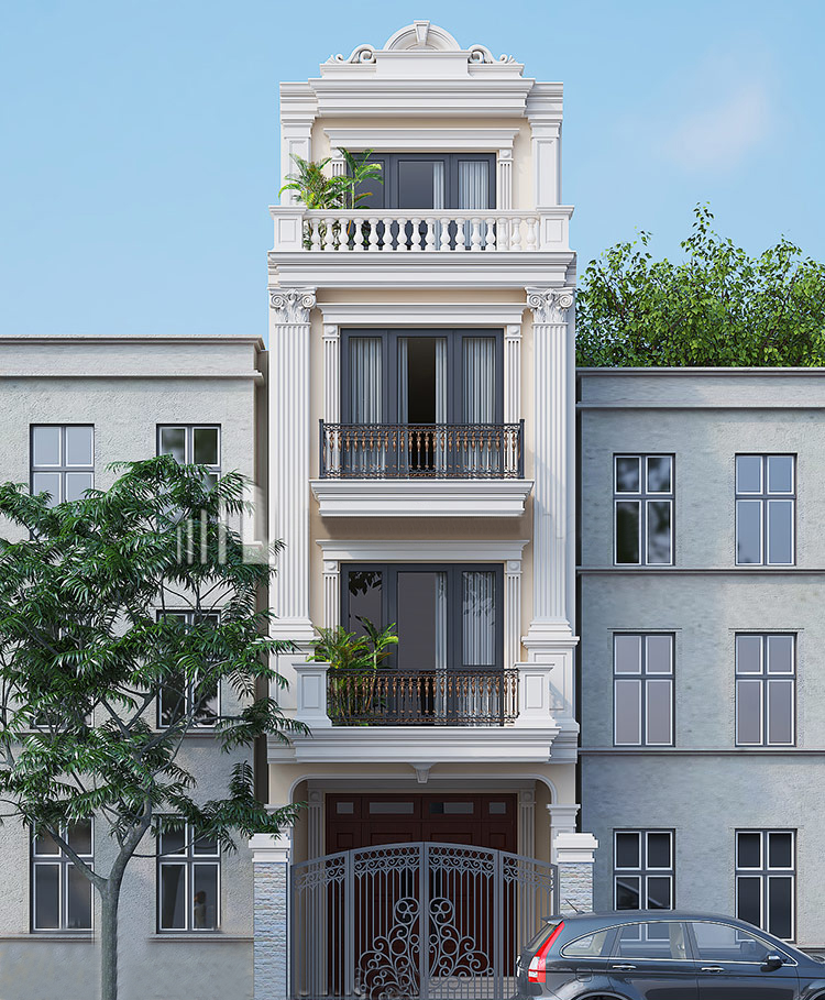 Mẫu thiết kế mặt tiền nhà ống 4 tầng