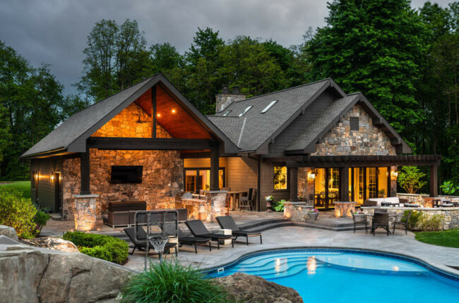 Lối đi vào sân vườn, cùng với các cảnh quan bên ngoài được chú trọng về mặt thiết kế sẽ tạo nên sự gần gũi. Ưu tiên nên sử dụng các đồ như mây, đá, gỗ, tre, nứa để làm cho sân vườn tự nhiên, mang cảm giác tươi mới.