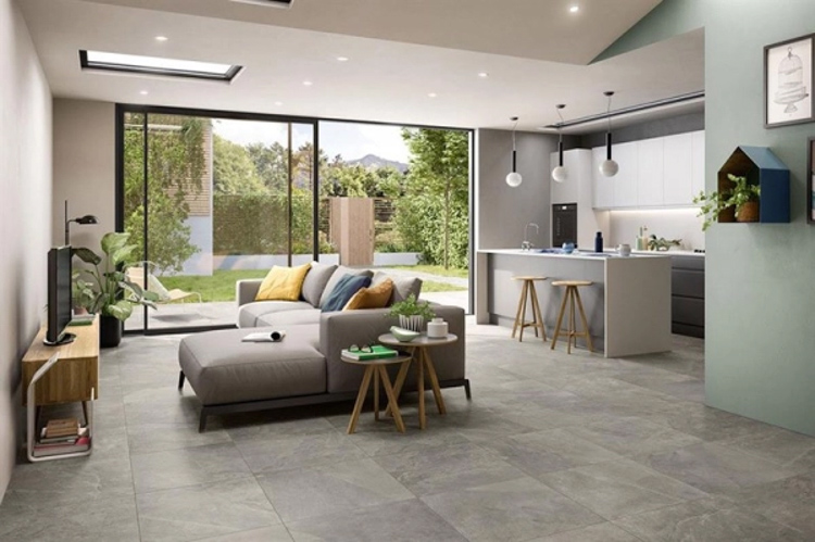 Không gian phòng khách và bếp mở rộng, tạo cảm giác gần gũi và thoải mái.