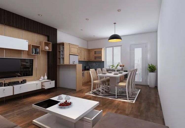 Thiết kế phòng khách liên bếp giúp cho việc di chuyển giữa các khu vực nấu nướng và tiếp khách trở lên lịch hoạt, dễ dàng hơn. Bạn có thể vừa chuẩn bị bữa cơm cho gia đình vừa giao tiếp một cách gần gũi và tự nhiên nhất với các vị khách.