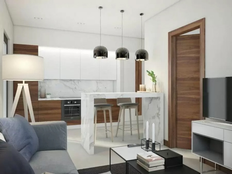 Một số mẫu thiết kế phòng khách liền bếp nhà ống nhỏ: