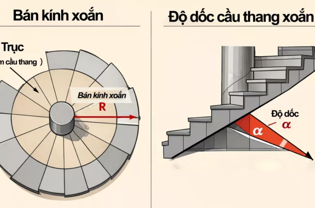 Chính đặc điểm này khiến cầu thang xoắn khó thiết kế và thi công hơn. Nếu áp dụng tư duy thiết kế cầu thang truyền thống cho cầu thang xoắn, rất dễ dẫn đến sai lệch về kích thước, độ dốc và nhịp bước.
