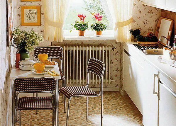 Trong trường hợp này, thay vì sử dụng bộ bàn ăn thông thường, bạn hãy chuyển sang dùng bàn ăn gắn trên tường để tiết kiệm diện tích. Bên cạnh đó, việc sử dụng ghế không có lưng dựa cho phép bạn có thể cất gọn chúng vào bên dưới gầm bàn, giải phóng không gian cho lối đi lại. Bạn còn có thể tận dụng bề mặt ăn để cho việc chuẩn nấu nướng cũng rất tiện lợi.