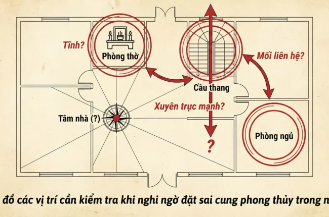 Trong phong thủy, trung tâm nhà là “gốc” để mọi cung vị lan tỏa. Nếu gốc sai, mọi bố trí phía sau đều khó đạt hiệu quả.
