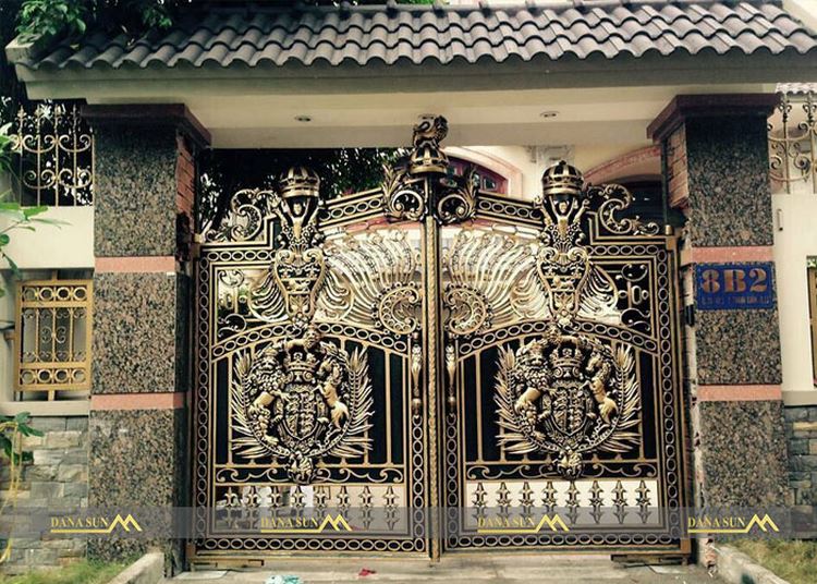Mẫu cổng 04: Mẫu cổng nhôm Đúc, mẫu cổng thể hiện sự đẳng cấp, tinh sao và vô cùng khác biết của gia chủ. Ngoài kích thuớc cho cổng 2 cánh, cổng nhôm Đúc thường có thêm 1 đến 2 cổng phụ ở hai bên. Về cơ bản mẫu cổng này phù hợp với các công trình biệt thự cổ, dự án ngân sách lớn.