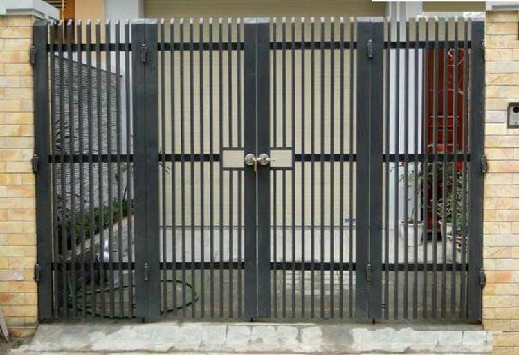 Mẫu cổng 01 được chia thành 2 phần với 1 cửa nhỏ để dùng thường xuyên cho việc người ra vào và xe máy. Phần còn lại là cổng to chủ yếu mở khi nhà có sự kiện hoặc oto vào nhà. Mẫu cổng 01 thường dùng cho nhà biệt thự với sơn tối mầu, chịu mưa nắng tốt. Thanh sắt kẻ dọc không tích nước sau mưa nên vô cùng bền bỉ.