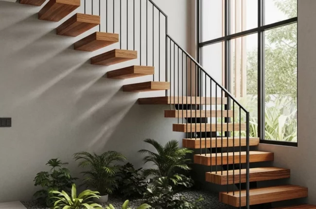 Cầu thang chữ L – cân bằng giữa diện tích và tiện nghi