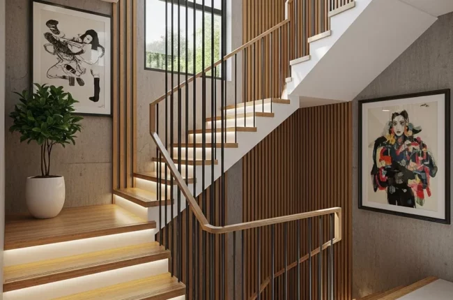 Ánh sáng tốt không chỉ tăng an toàn mà còn giúp khu vực cầu thang trở nên thoáng và dễ chịu hơn.