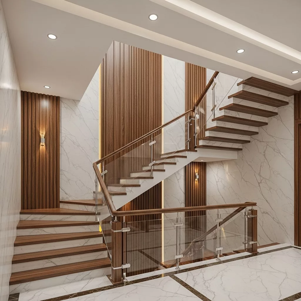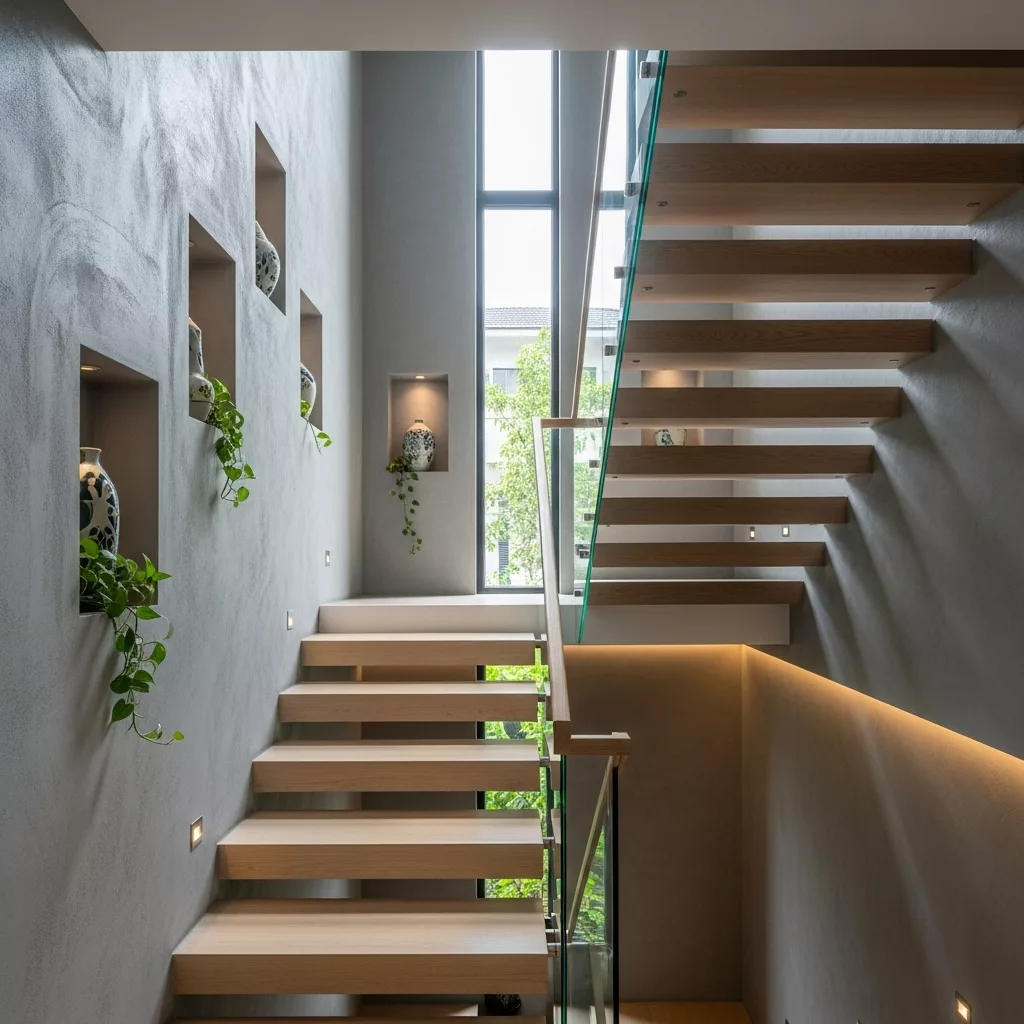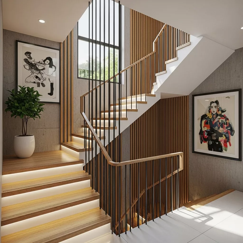 Ánh sáng tốt không chỉ tăng an toàn mà còn giúp khu vực cầu thang trở nên thoáng và dễ chịu hơn.
