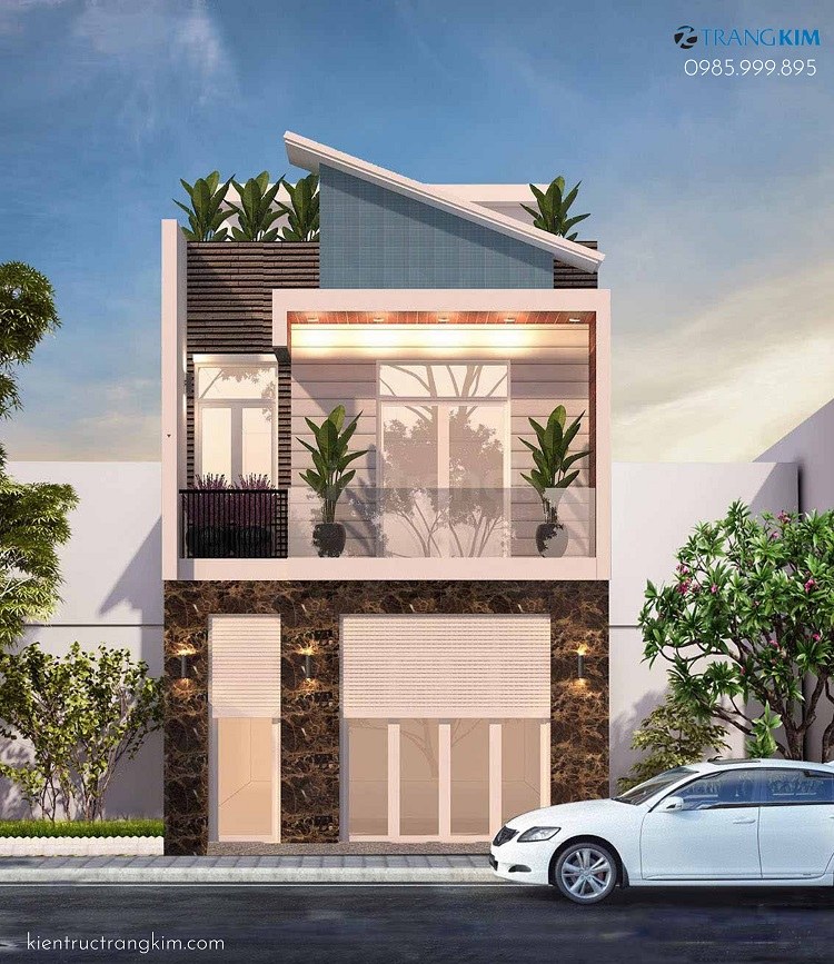 Hình ảnh 2: căn nhà ống mái thái có gara oto