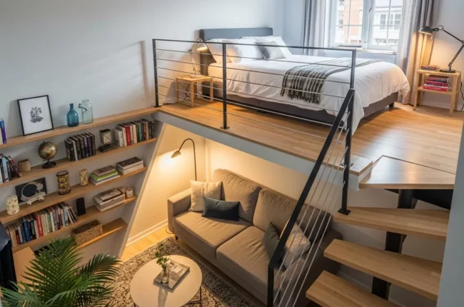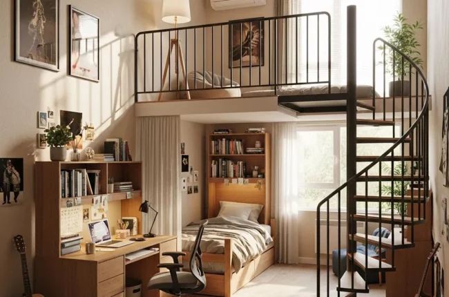 Không gian ngủ trên gác bí và thấp