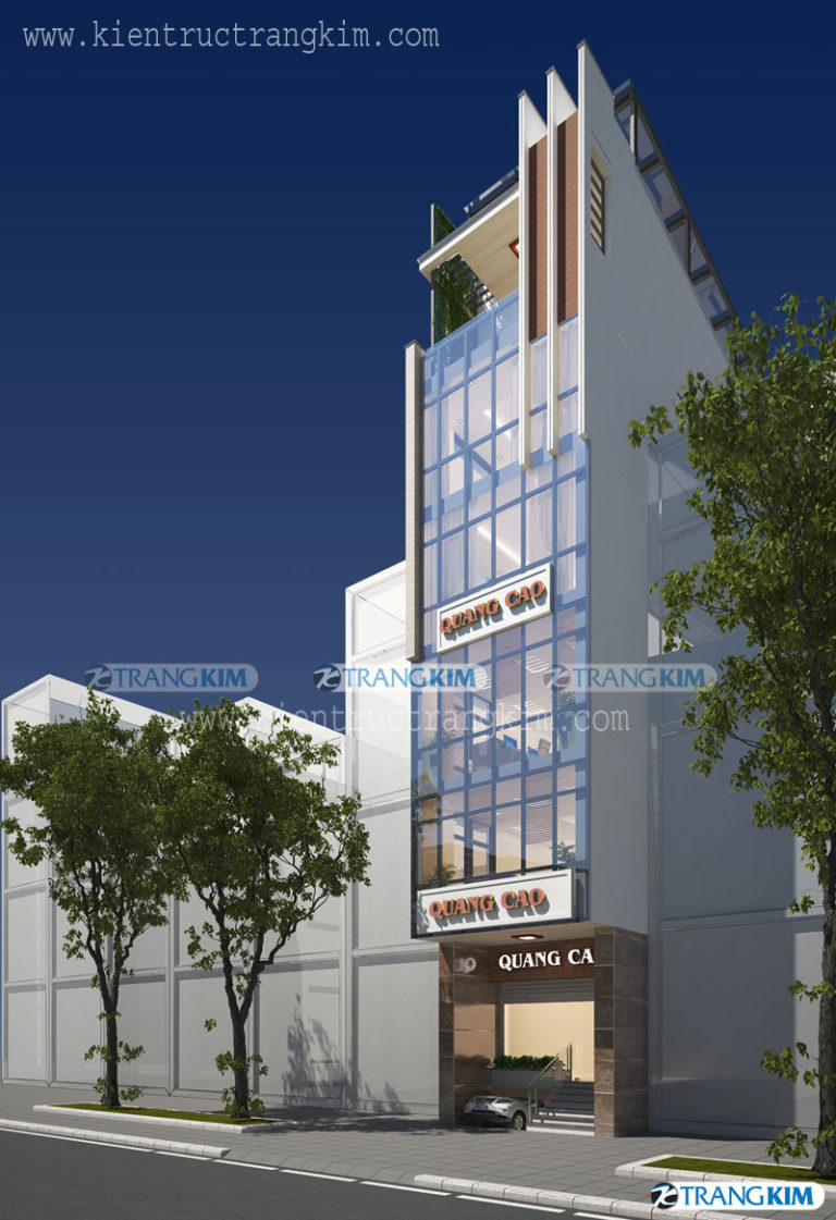 Nằm ở vị trí trung tâm, có một mặt tiền đẹp cùng thiết kế hiện đại, mẫu thiết kế chắc chắn sẽ thu hút những doanh nghiệp đang muốn thuê văn phòng làm việc. Các khối kiến trúc phía dưới và phía trên có tỉ lệ kiến trúc hợp lý mang đến tổng thể vững chắc, khỏe khoắn. Cửa kính màu xanh giúp văn phòng bên trong luôn có sự dịu mát, giảm tác động của bức xạ mặt trời.