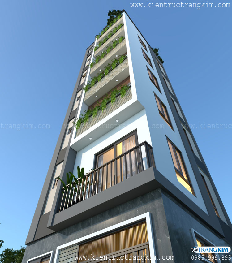 Mẫu thiết kế nhà trọ cao tầng xanh