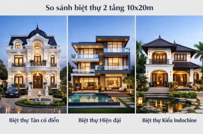 So sánh phương án thiết kế biệt thự 2 tầng 10x20m