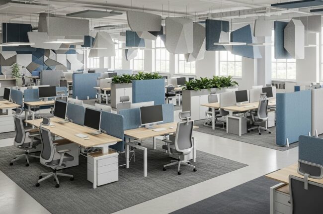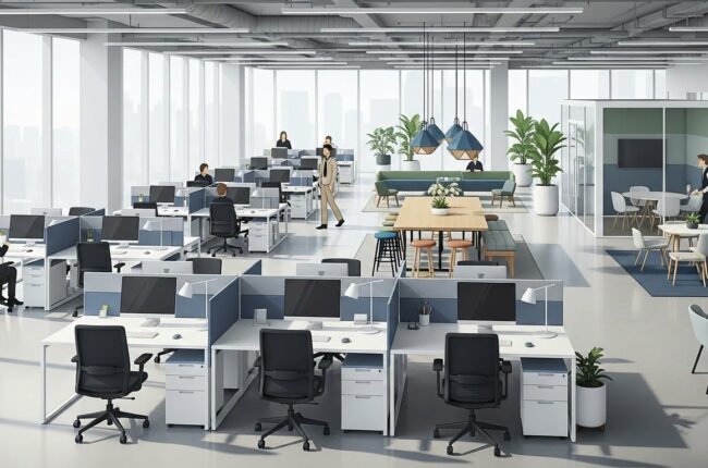 Bố trí không gian mở trong văn phòng hiện đại và riêng tư