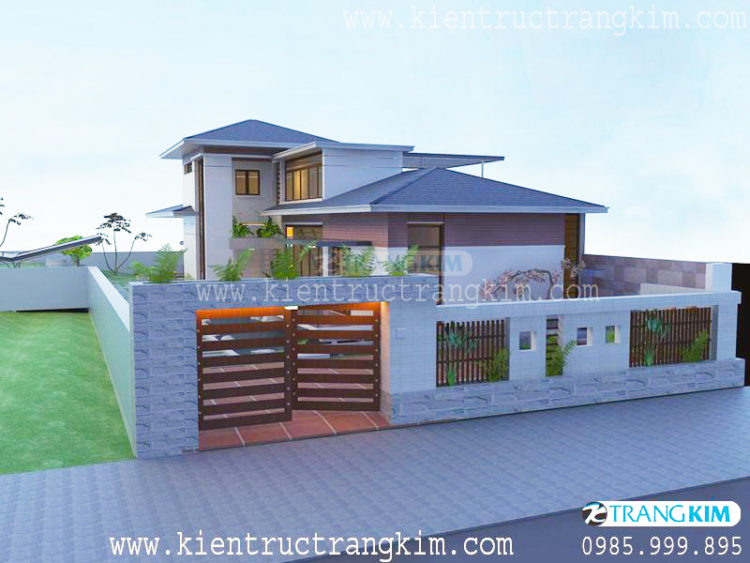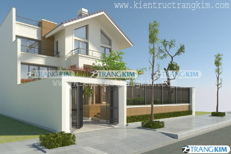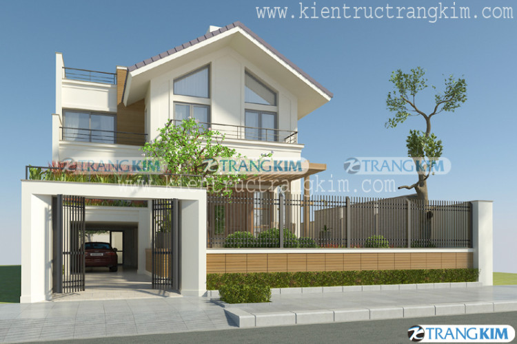 Thiết kế biệt thự hiện đại mái chéo 2 tầng 1 tum tại Hà Nội