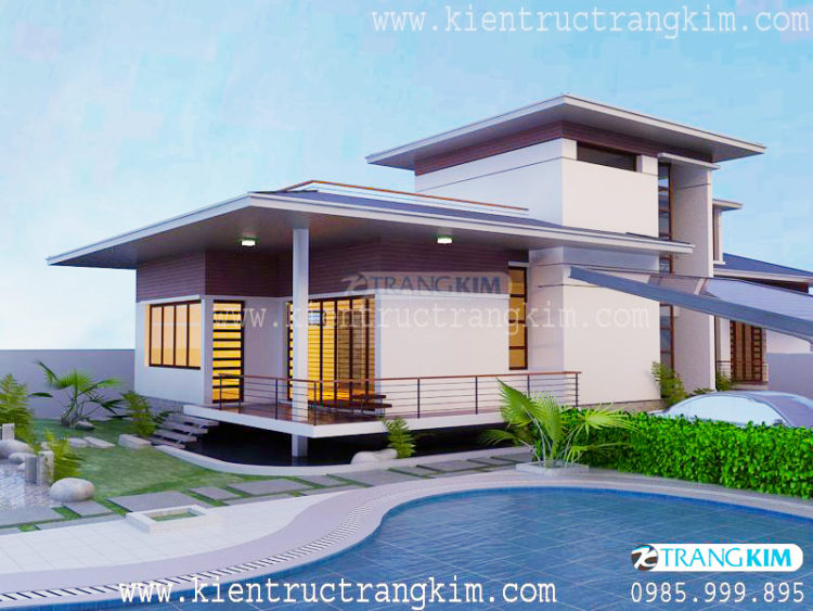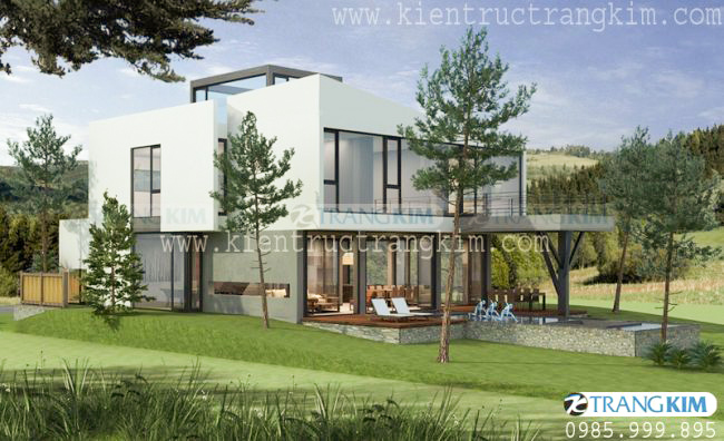 Mẫu biệt thự 2 tầng này cho bạn trải nghiệm về không gian nghỉ dưỡng tuyệt vời. Một bãi cỏ xanh cùng những cây xanh quanh căn nhà giúp bạn tận hưởng không gian xanh đúng nghĩa. 2 phòng ngủ được thiết kế cho việc nghỉ ngơi của gia đình gồm bố mẹ và con nhỏ luôn trọn vẹn Những ô cửa kính giúp hướng sáng tối đa cho căn phòng. Không gian sinh hoạt chung được thiết kế rộng khắp giúp kết nối các thành viên trong gia đình một cách tốt nhất. Nhìn như một khu nghỉ dưỡng sang chảnh nhưng chi phí để xây dựng nó không hề đắt đỏ đâu bởi những hình khối kiến trúc và nội thất được thiết kế đơn giản tối đa, không cầu kì. Đây là một sự lựa chọn tuyệt vời cho gia đình có khu đất rộng thoáng đấy.