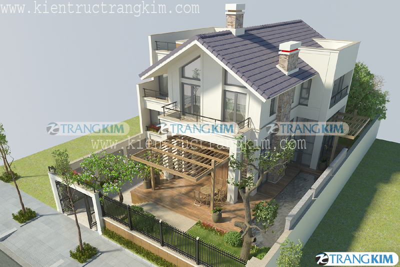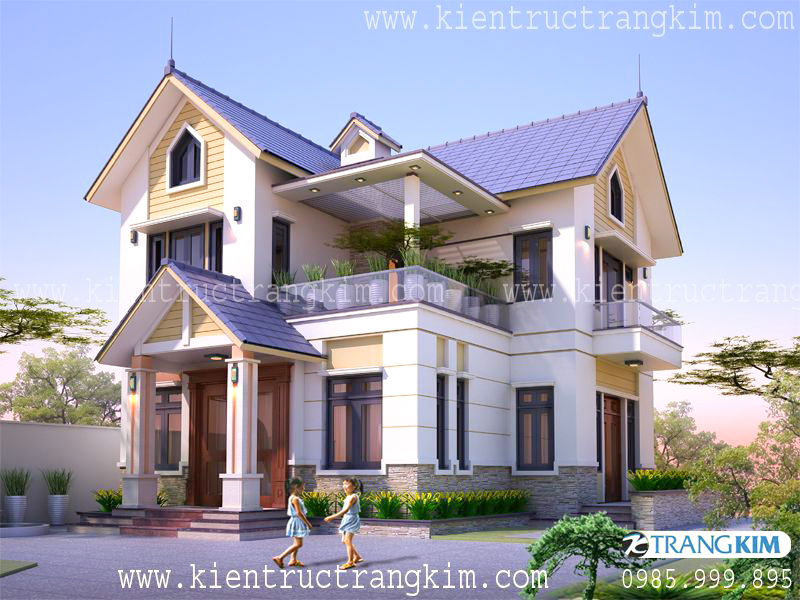 Mẫu biệt thự mái chéo 2 tầng mái chéo