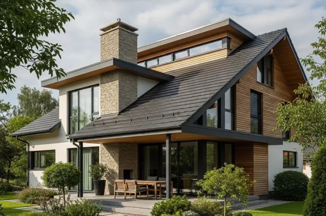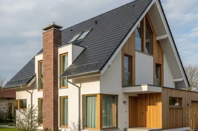 Hình ảnh minh họa: các phong cách nhà 2 tầng có ống khói – châu Âu, hiện đại, mái dốc