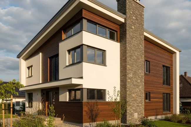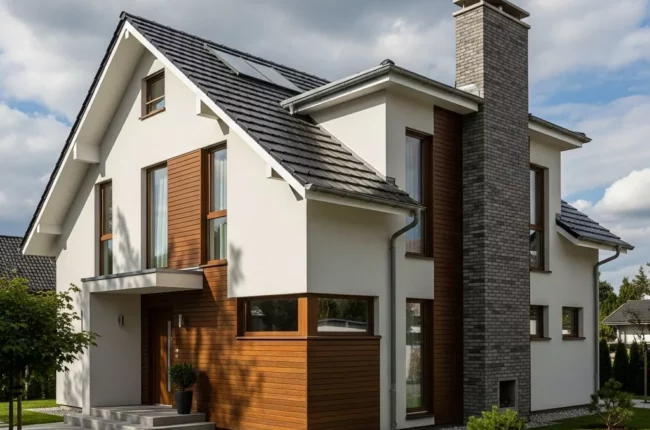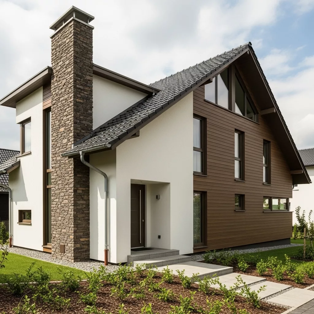 👉 Với nhà 2 tầng có ống khói, yếu tố “trang trí kiến trúc” thường được ưu tiên hơn, nhằm tạo dấu ấn thẩm mỹ và phong cách sống.