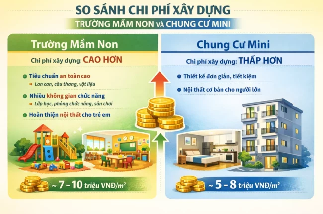 Điểm quan trọng là chi phí không tăng tuyến tính theo diện tích đất, mà tăng theo:
